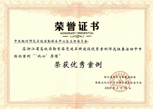 近日,浙江省教育后勤基建协会公布了全省高校后勤首届党建品牌建设优秀案例,我校后勤服务中心党总支“比心‘厚情’”党建品牌成功入选。
