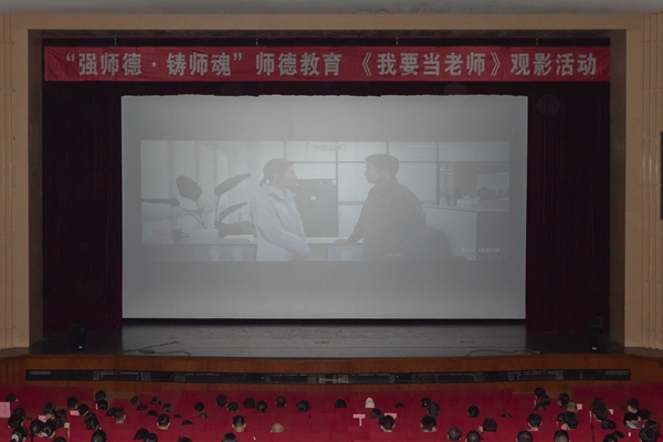 为深入学习宣传贯彻党的二十届三中全会精神和全国教育大会精神,深刻学习领会习近平总书记对学校思政课建设的重要指示精神,持续营造思政课改革创新的良好氛围,引导教师争做新时代“四有”好老师,9月25日下午,我校于东校区会堂组织观看思政课电影《我要当老师》,来自全校的教职工代表、师范生代表700余人现场观影。