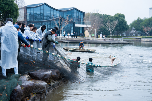 12月30日上午,学校第二届美食文化节暨德清湖捕鱼活动在东校区开幕。本次美食节以“‘鱼’你一起过新年”为主题,分开幕式、捕鱼活动、美食年货节三大会场。开幕式现场有雕刻展示区、4.2米*0.6米巨型蛋糕分发、制作鱼圆体验活动等。捕鱼活动结束后,学校餐厅连续三天开展免费品尝“鱼宴”活动,让广大师生品尝劳动的果实、品味收获的喜悦。美食年货节共举办2天,由34家供货商提供几百种商品,惠及师生,同时也为冬日的湖师校园增添一份“年味”。